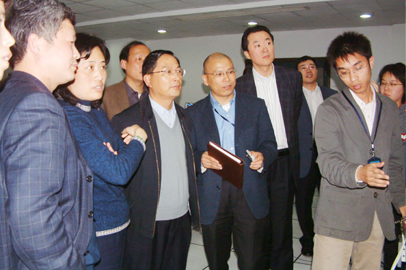 Mr. Jiang Yaoping, Deputy Minister of Ministry of Information Industry visited Guoxin on April 6, 2006, accompanied by officials from Information Industry Branches in Zhejiang.