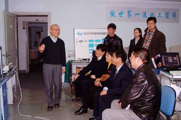 听取公司领导的工作汇报并兴致勃勃地观看了高清晰度数字电视演播后,洪书记指出根据中国数字电视产业规划,2004年数字电视的发展前景将非常广阔,国芯科技在前期研发的基础上,要抓住市场机遇,争取实现飞跃。