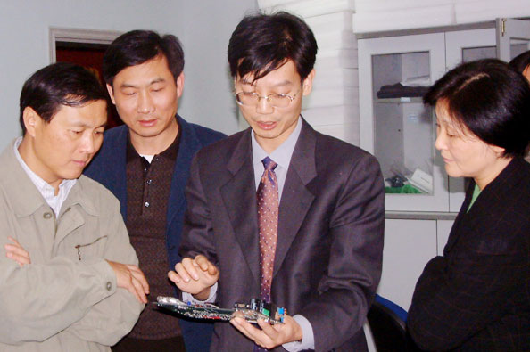 2002年11月6日,杭州市副市长盛继芳等一行莅临杭州国芯科技股份有限公司视察指导。