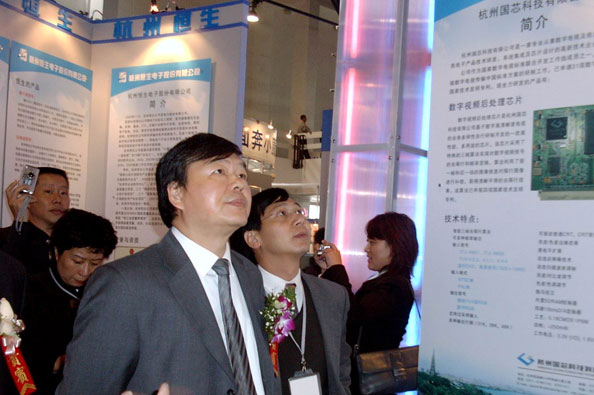 杭州国芯科技股份有限公司的有线数字电视接收芯片、数字视频后处理芯片、卫星数字电视接收芯片等产品参展此次软博会。信息产业部娄勤俭副部长及浙江省信息产业厅陈大信厅长兴致勃勃地观看了国芯科技的展台并提出要在国民经济和社会各领域广泛使用软件和信息技术,推进信息化进程。通过若干年的努力,促进中国从信息大国向信息强国转变。